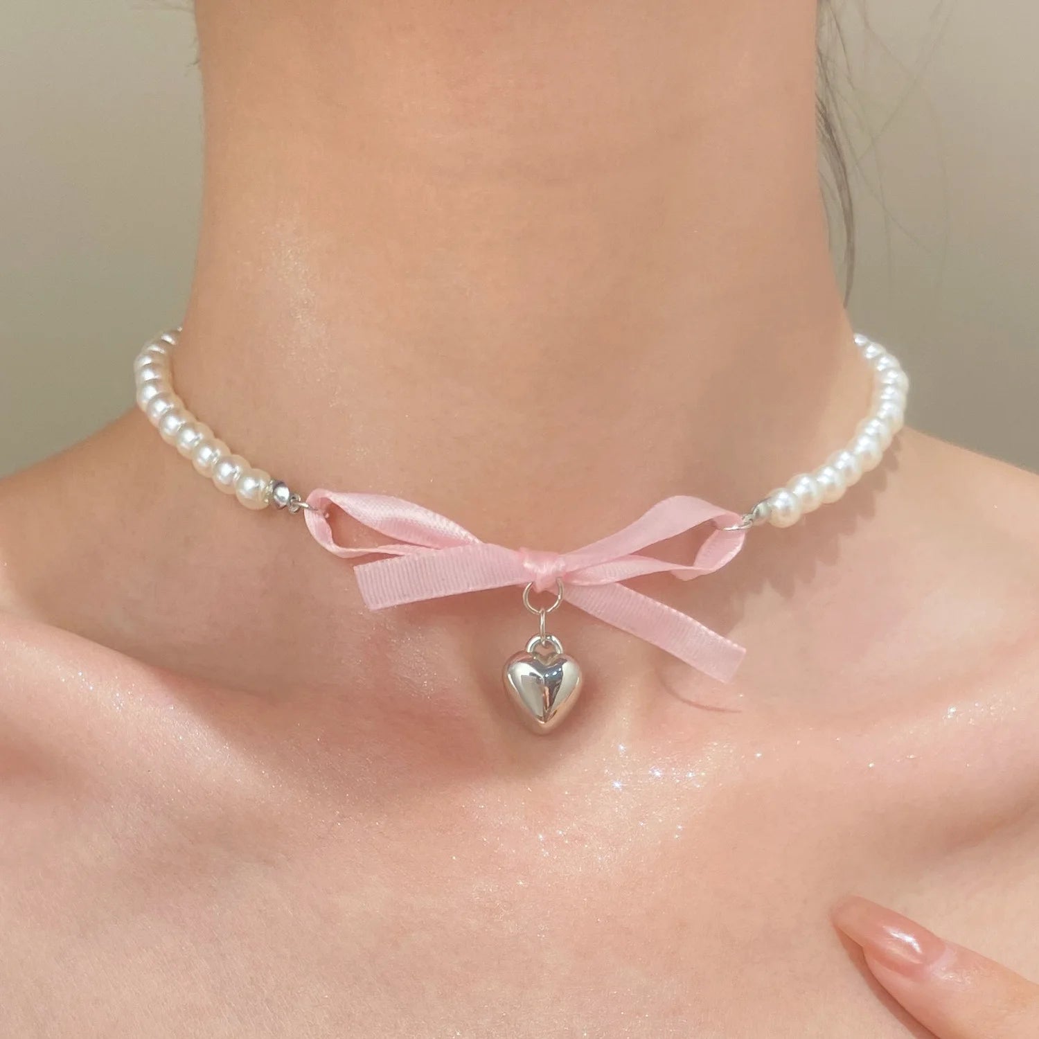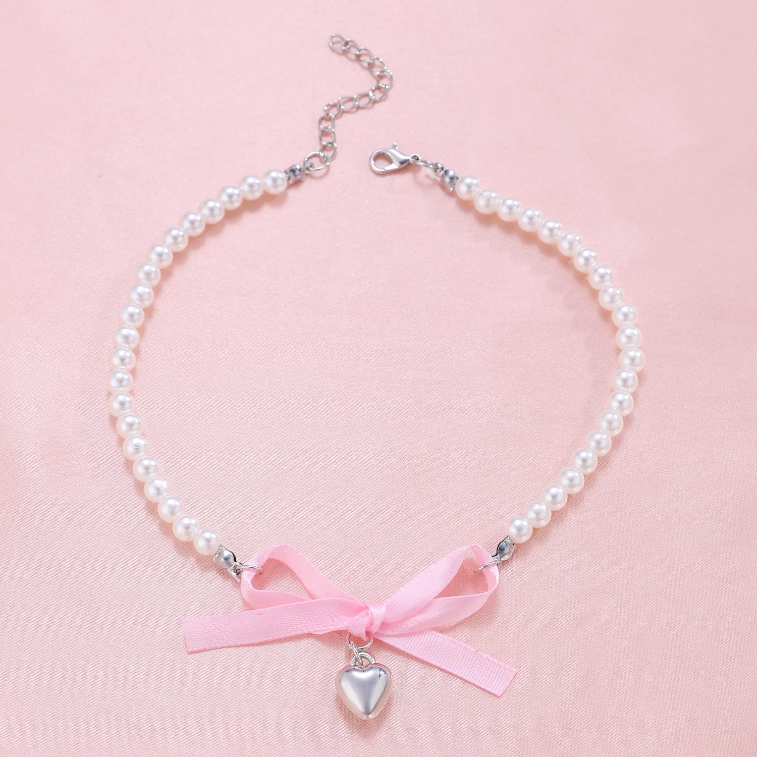 Pingente de Coração com Pérolas e Laço